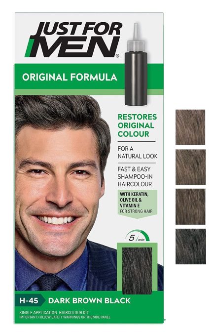Just For Men Original Formula Dark Brown Black Hair Dye, Targets Only The Grey Hairs, Restoring The Original Colour For a Natural Look – H45