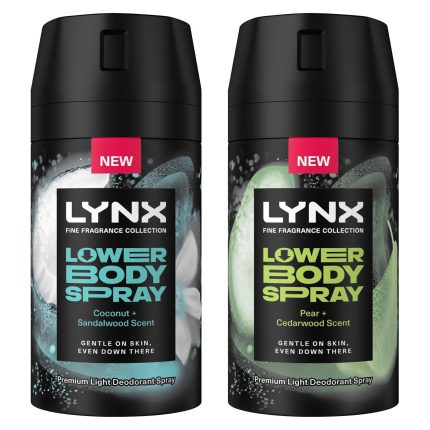 Lynx Lower Body Bundle of 2x Body Spray Coconut + Sandalwood and Pear + Cedarwood Alcohol and Aluminium-Free Deodorant for Men with 72 Hours of Freshness, 100 ml