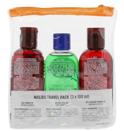 Malibu Sun Fast Tanning Travel Essentials, SPF 4 Bronzing and Beta Carotene Oil, Soothing Aloe Vera After Sun Gel, Water Resistant, Tropical Coconut Fragrance, Multipack, 3 x 100ml