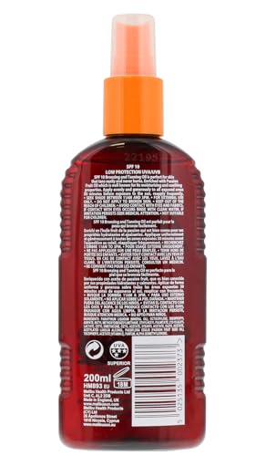 Malibu Sun SPF 15 Bronzing Tanning Argan Oil Spray with Medium Protection, Water Resistant, Tropical Scent, 200ml