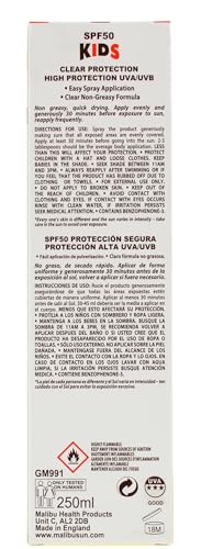 Malibu Sun Kids SPF 50 Clear Protection Sunscreen, High Protection, Water Resistant, Dry Feel, 250ml