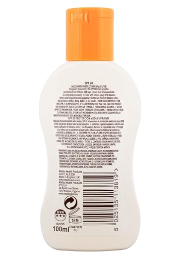 Malibu Sun SPF 20 Lotion, Medium Protection Sun Cream, Water Resistant, Vitamin Enriched, 100ml
