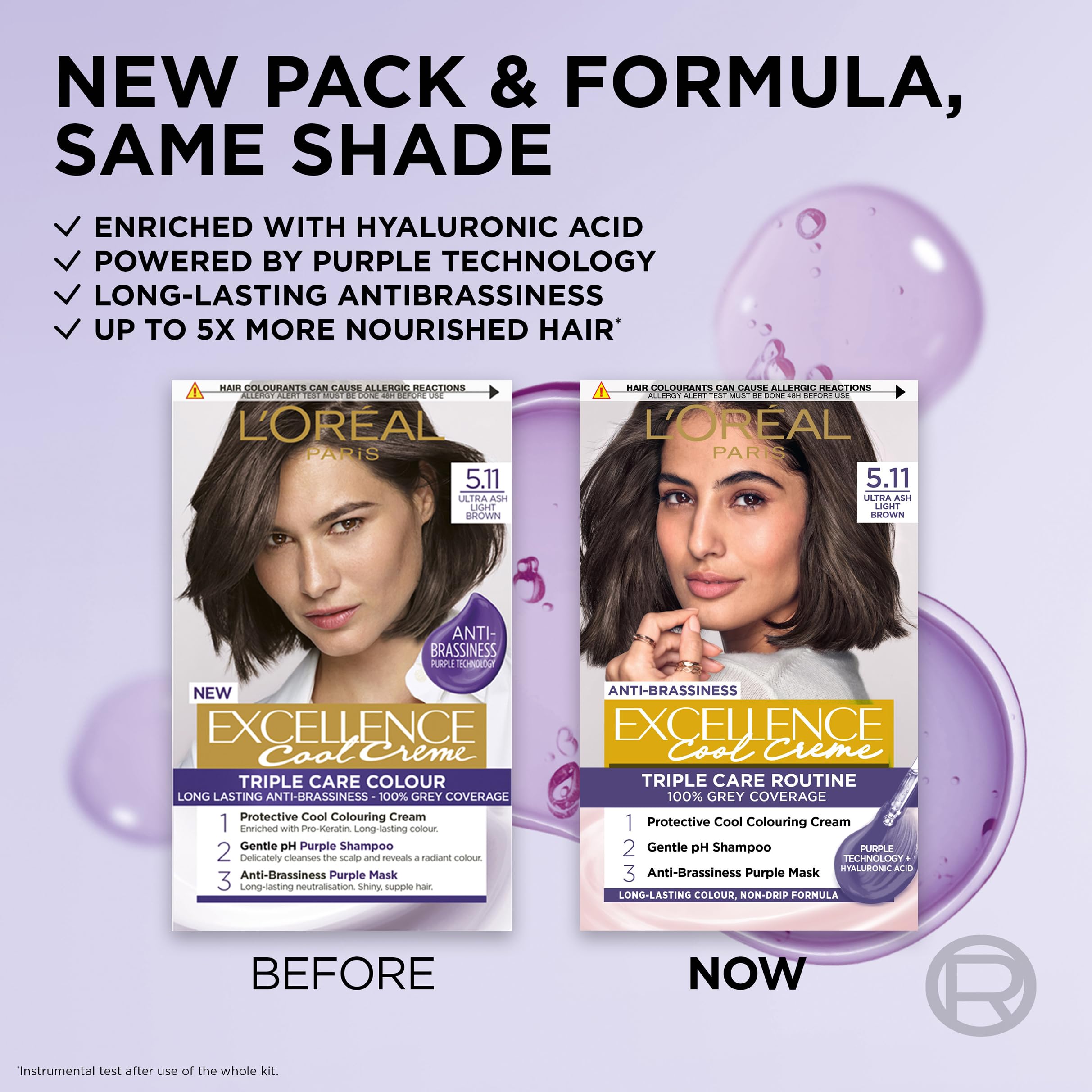 L’Oréal Paris Excellence Cool Crème Permanent Hair Dye, Radiant At-Home Hair Colour with up to 100% Grey Coverage, Pro-Keratin, Up to 8 Weeks of Colour, Colour: 5.11 Ultra Ash Light Brown