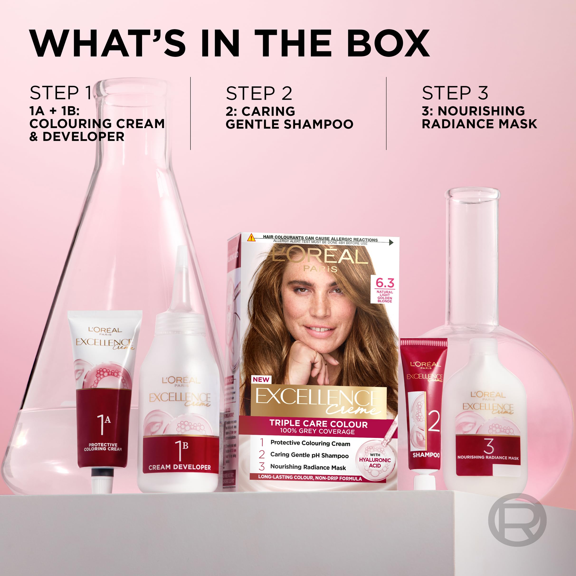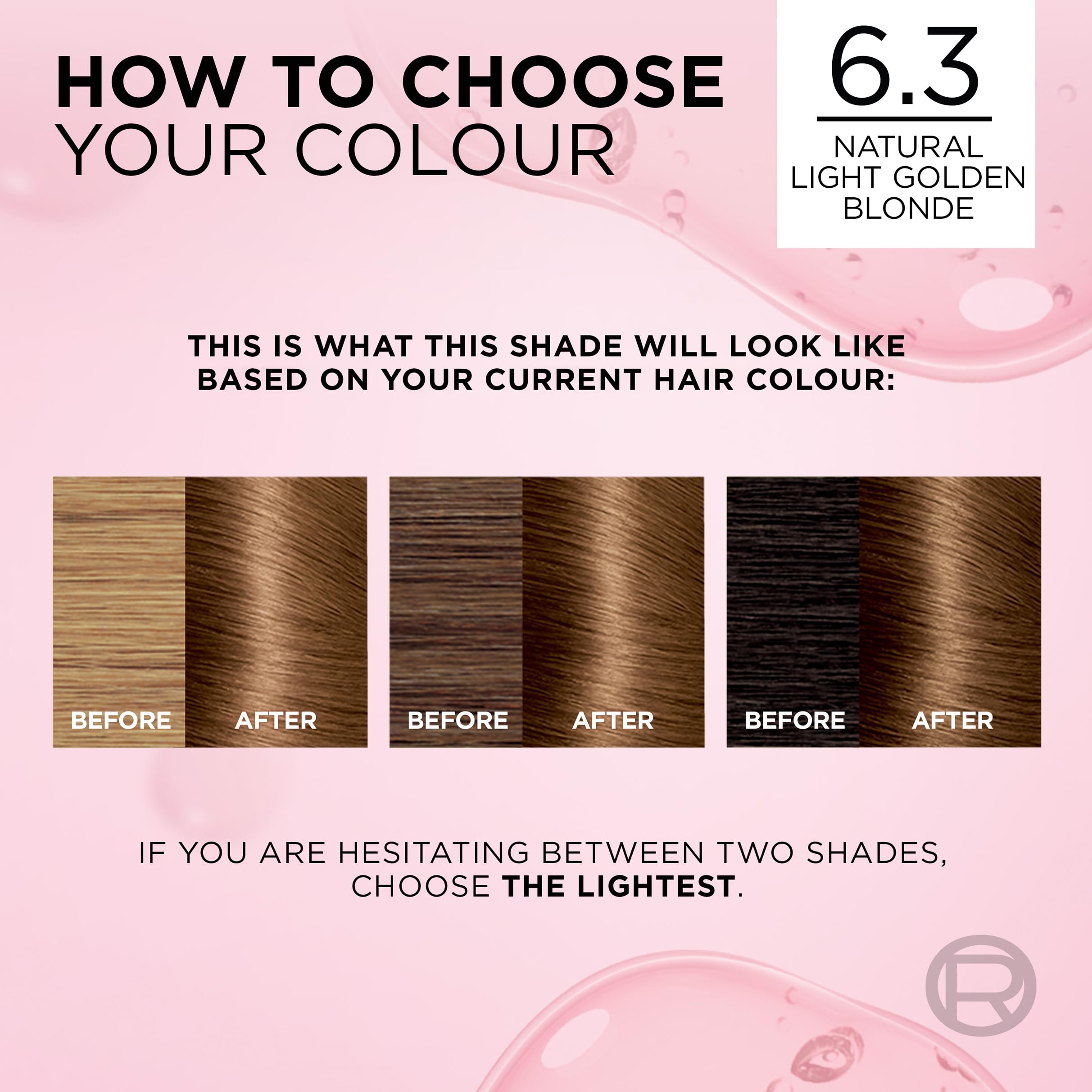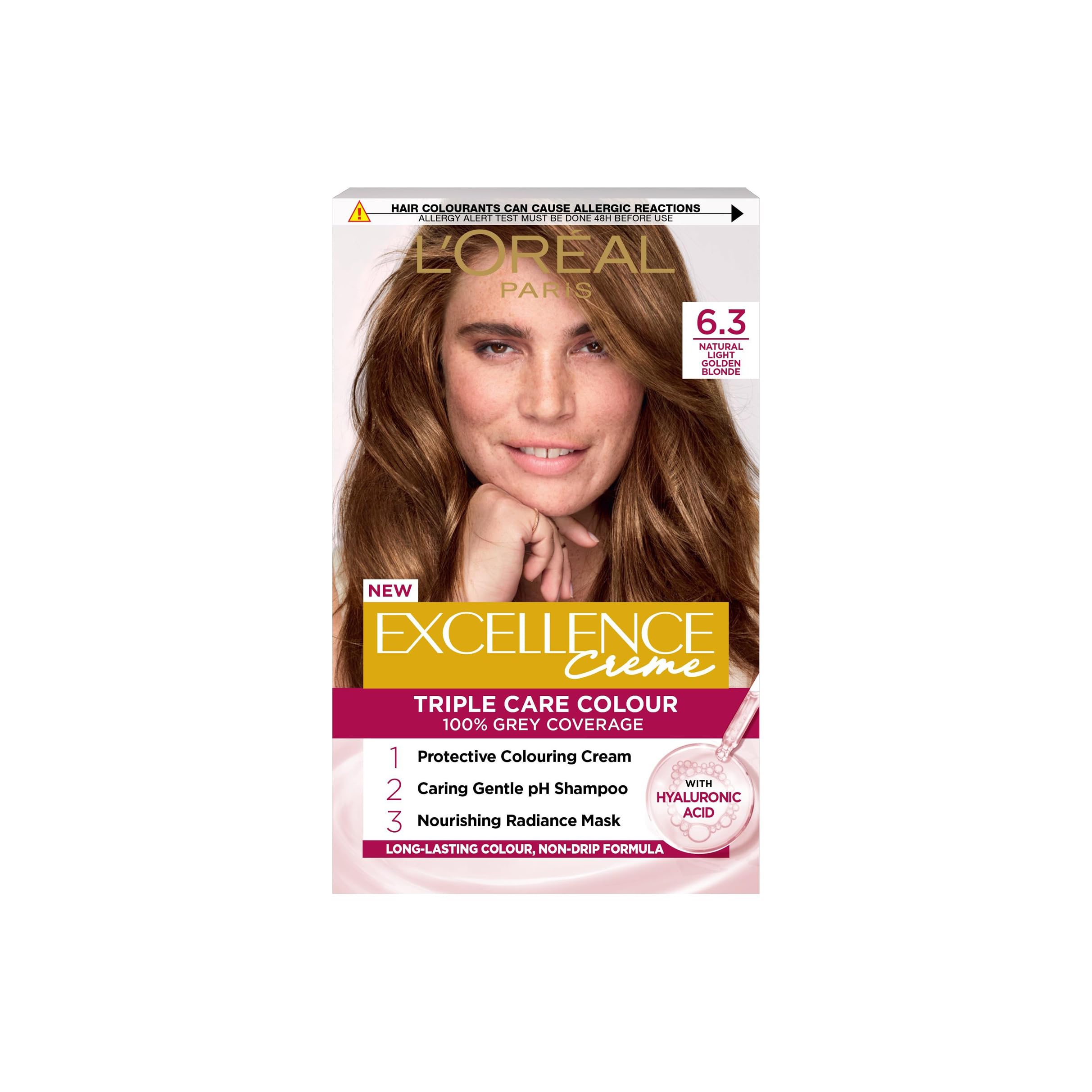 L’Oréal Paris Excellence Crème Permanent Hair Dye, Radiant At-Home Hair Colour with up to 100% Grey Coverage, Pro-Keratin, Up to 8 Weeks of Colour, Colour: 6.3 Natural Light Golden Blonde