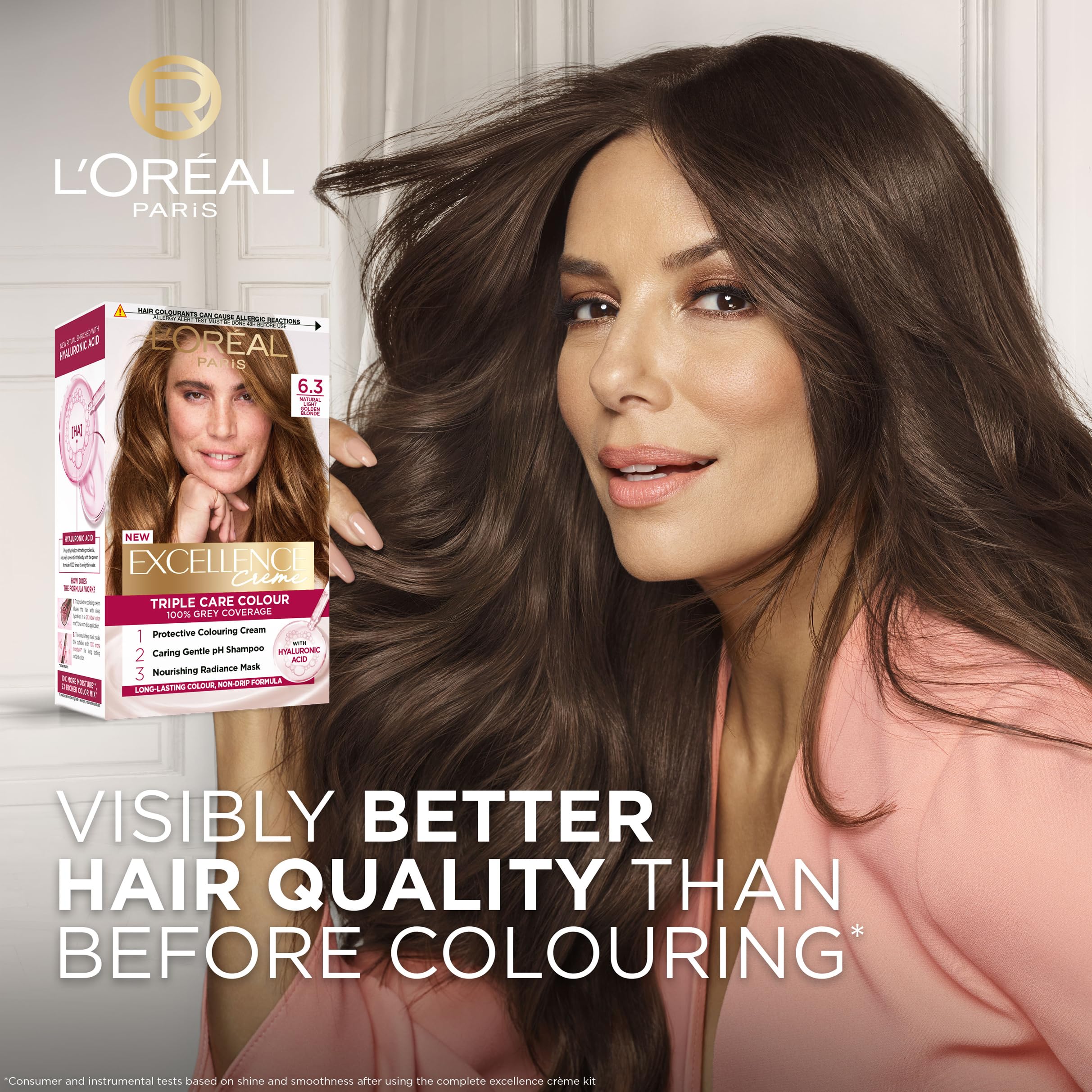 New to at home colourings? Want to beautify your natural hair colour and blend up to 100% of greys? Excellence Crème by L’Oréal Paris is a permanent hair dye that will help you to achieve a refreshing colour in under 30 minutes. The product enriches your hairs natural beauty and visibly improves your hairs look and feel. The formula is enriched with key ingredients such as Pro-Keratin and Ceramide and leaves the hair looking smoother, feeling stronger and replenished with revitalised colour. Always check the colour result on pack depending on current hair colour. Over 30 shades of hair colour available including: red hair dye, brown hair dye, black hair dye and blonde hair dye. Follow the instruction leaflet and read the safety information. Be colour safe, always patch test 48 hours before use. Directions hair dye: please refer to leaflet in the pack. If Excellence Crème is not for you then why not try our other range of box dyes including Preference, Colorista and Age Perfect. If you want to colour with low commitment then try Casting Crème Gloss, a semi permanent hair dye that washes out in 28 shampoos. Or for a quick fix between at home or salon colourings don’t forget Magic Retouch.