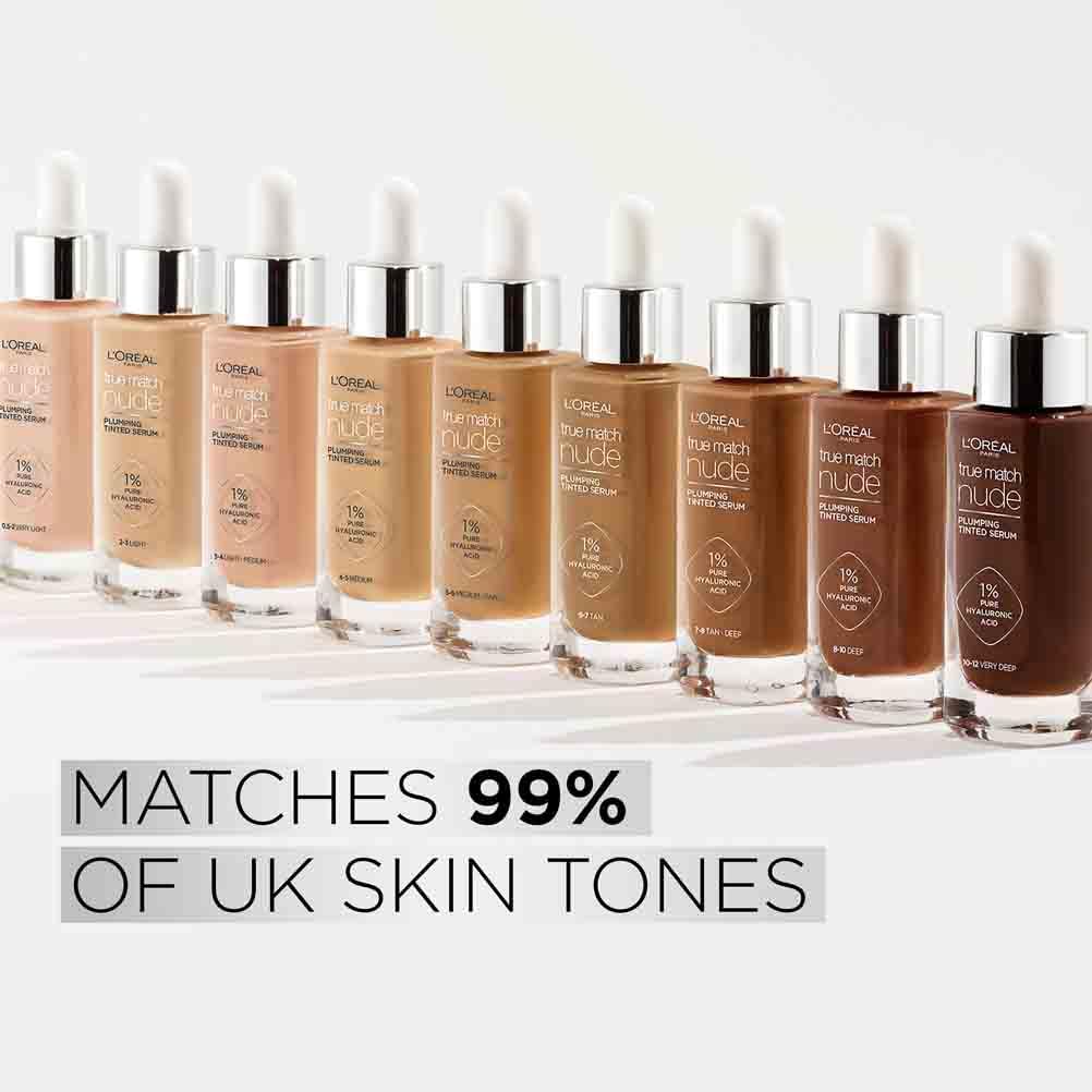 True Match Nude Tinted Serum is now formulated with micro-epidermic hyaluronic acid to cover like a foundation and replump skin in one hour*. It’s the perfect skincare and makeup hybrid. This innovative formula combines the benefits of a skincare serum with the coverage of a foundation. Available in 10 super blendable shades, this sheer formula leaves skin with a luminous finish for a natural-looking nude look. (*Clinical study on 84 women over 6 weeks).